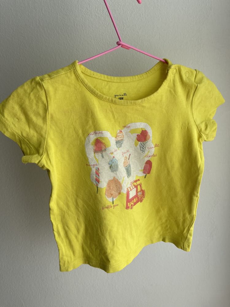 Divna majica kratkih rukava u savrseno zutoj boji sa dizajnom razlicitih sladoleda