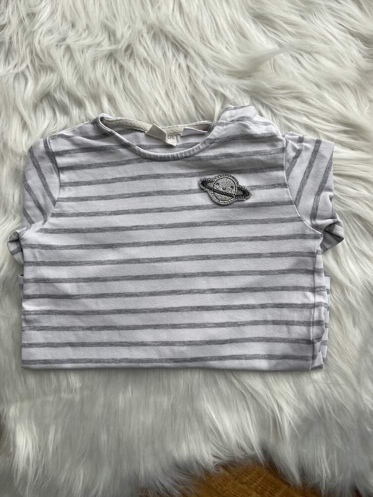 Lijepa majica dugih rukava u sivim nijansama sa slikom planete na lijevoj strani
