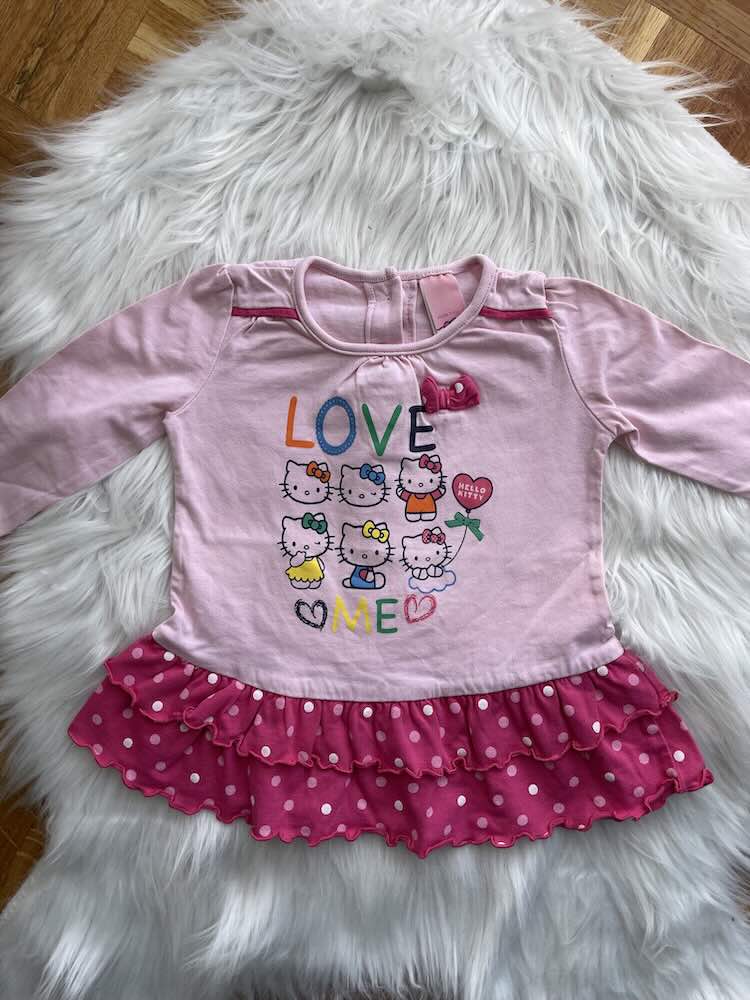 Preslatka majica ili haljinica za djevojcice u rozoj boji sa volanima na krajevima i printom mace hello kitty