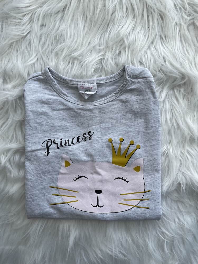 Predivna majica sive boje sa likom mace koja nosi krunu i natpisom princeza