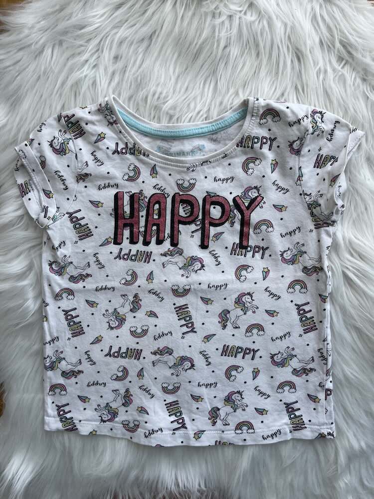 Sarena majica kratkih rukava za djevojcice sa natpisom Happy i sarenim jednorozima i dugom