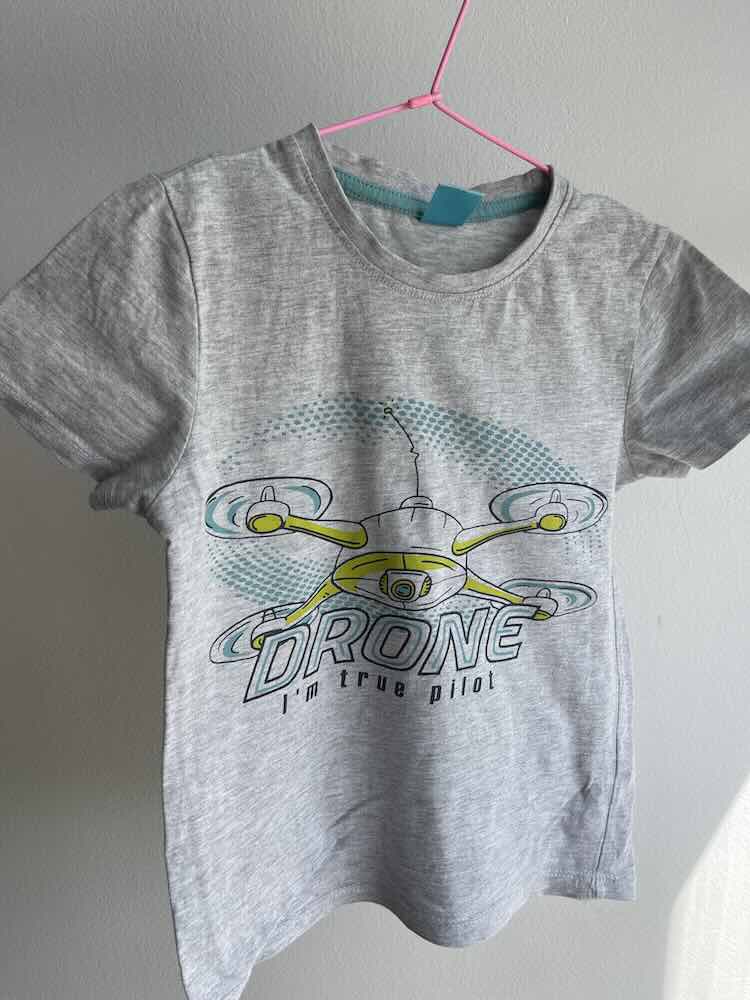 Lijepa majica kratkih rukava za djecake u sivoj boji sa slikom drona i natpisom
