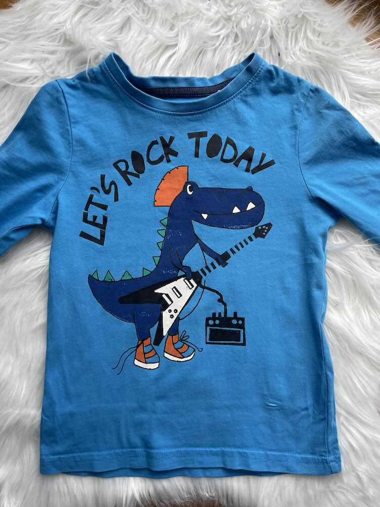 Majica dugih rukava za djecake u plavoj boji sa likom dinosaura koji svira gitaru