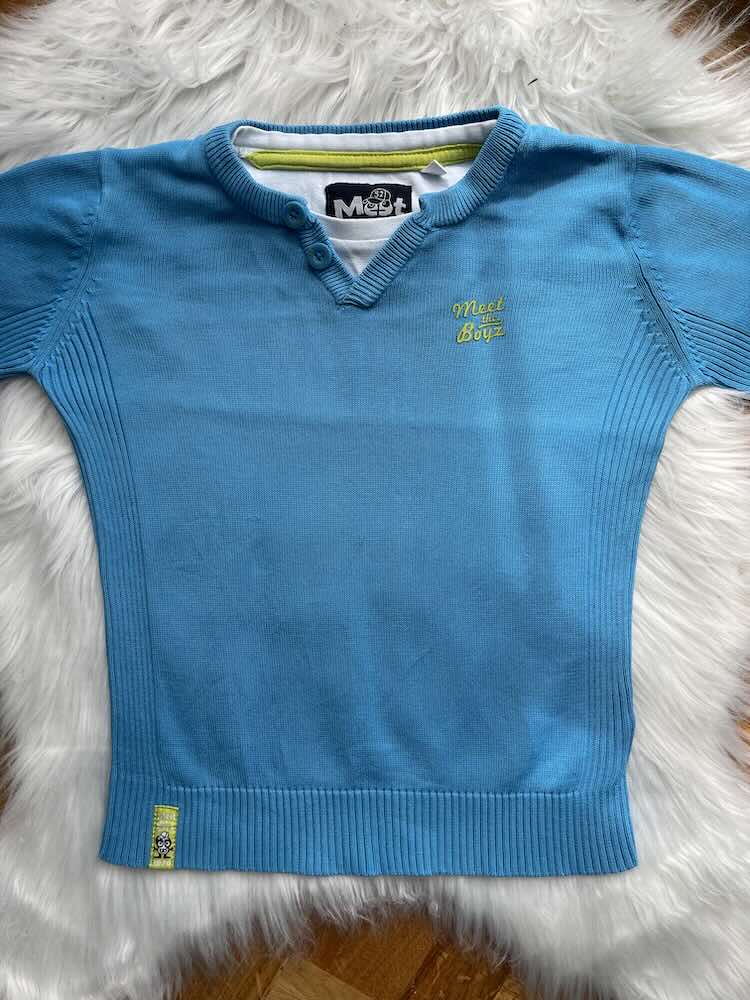 Majica dugih rukava koja izgleda kao dzemperic u svijetlo plavoj boji sa natpisom na lijevoj strani