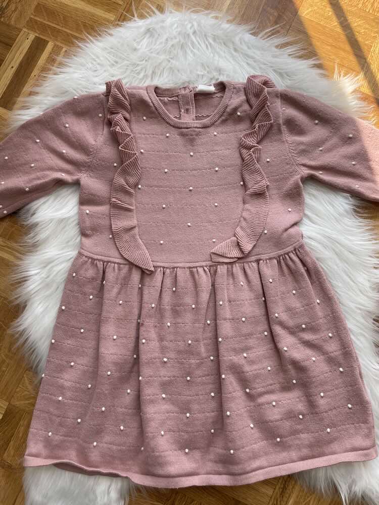 Prelijepa haljina dugih rukava u rozoj boji sa bijelim malim tufnicama