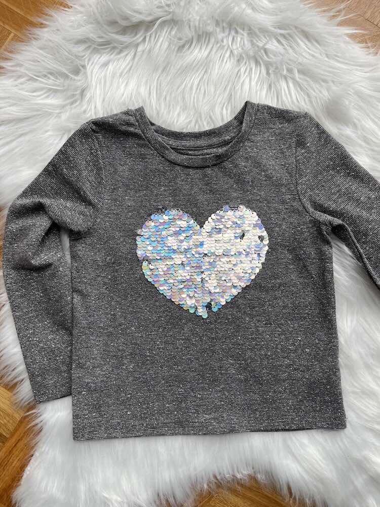 Predivna majica dugih rukava sive boje sa fluorescentnim srcem na sredini