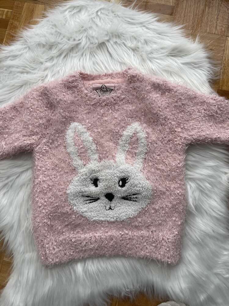 Predivna cupava majica sa printom zeca na sredini koji se sjaji