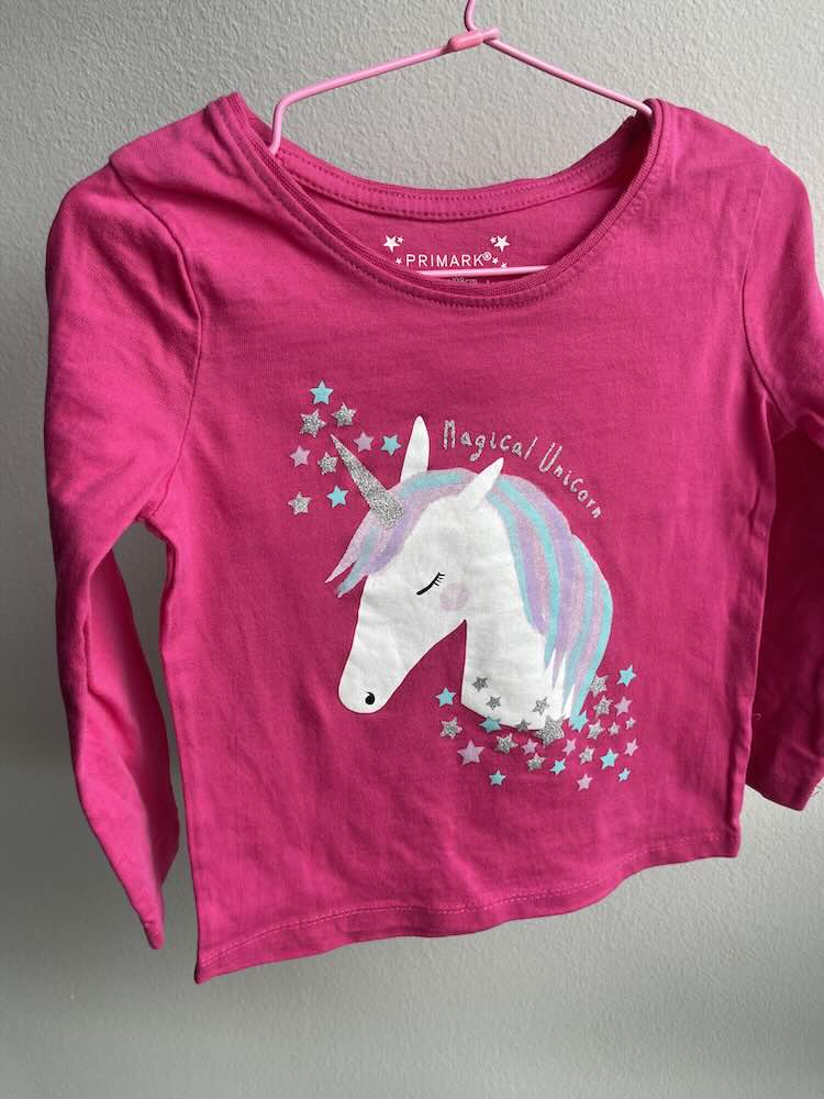Predivna majica dugih rukava, roze boje, sa printom jednoroga na sredini majice