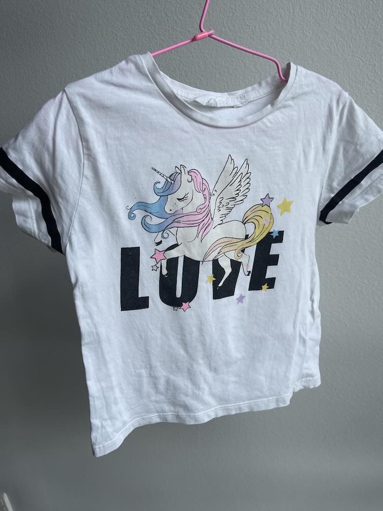 Prelijepa majica za djevojcice i ljetne dane, print jednoroga i teksta, odgovara velicini 98/104