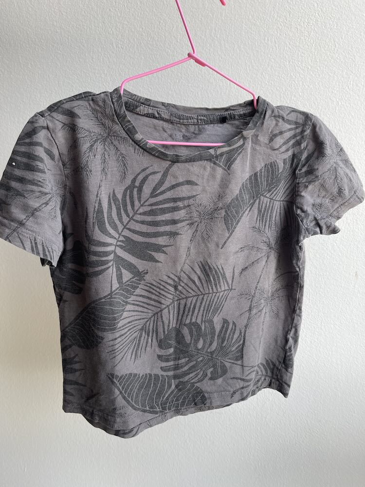 Predivna majica sive boje sa raznim printom listova