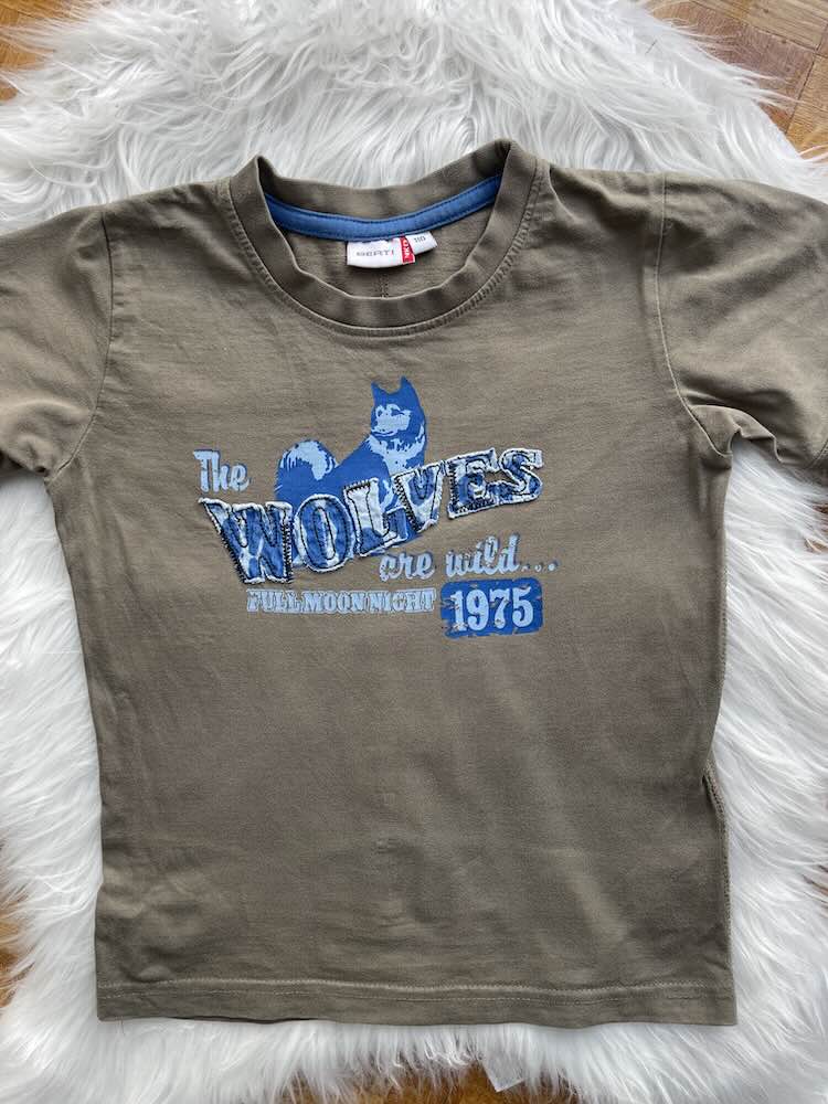 Zanimljiva majica sa slikom vuka na sredini i rukava pola pola