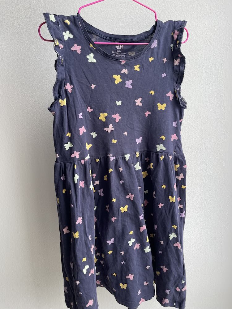 Divna ljetna haljinica teget boje sa razlicitim bojama leptirica