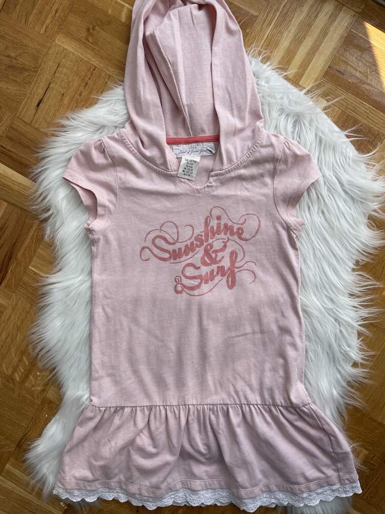 Predivna haljinica sa kapuljacom i sa printom sjajnih slova Sunshine, odgovara velicini 110\116