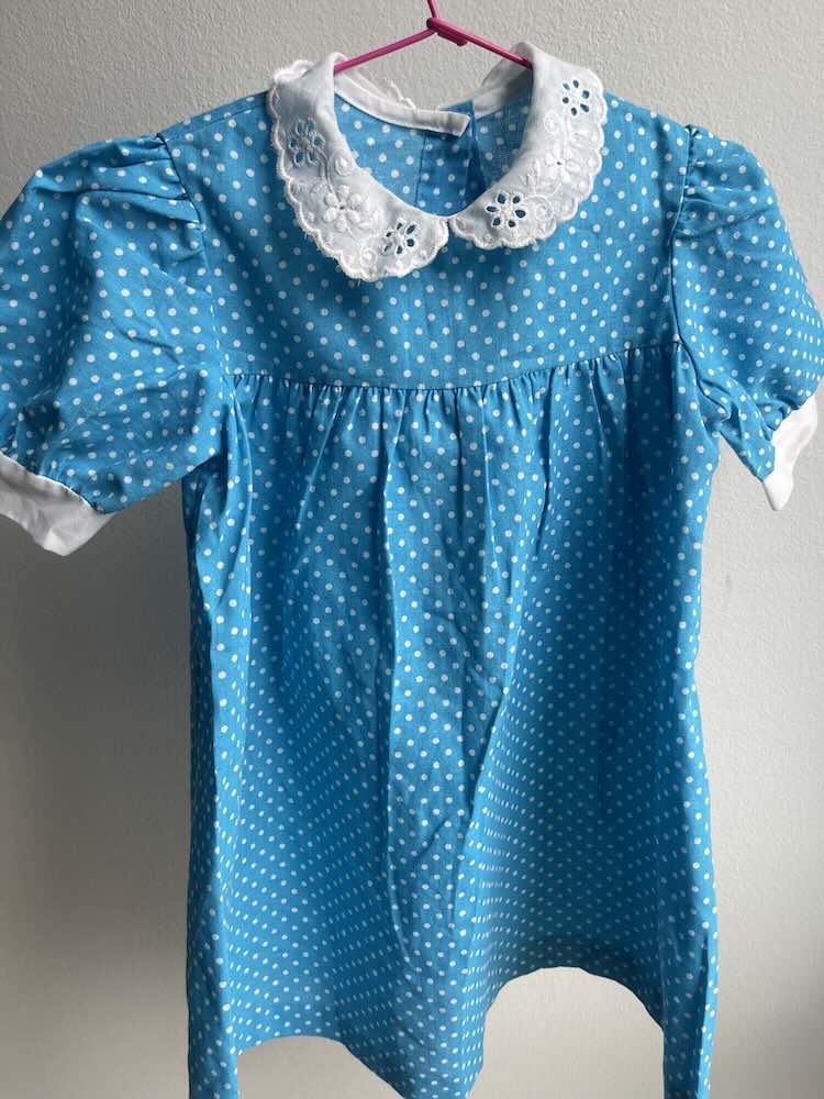 Preslatka haljinica plave boje sa bijelim tufnicama, i divnom heklanom kragnom