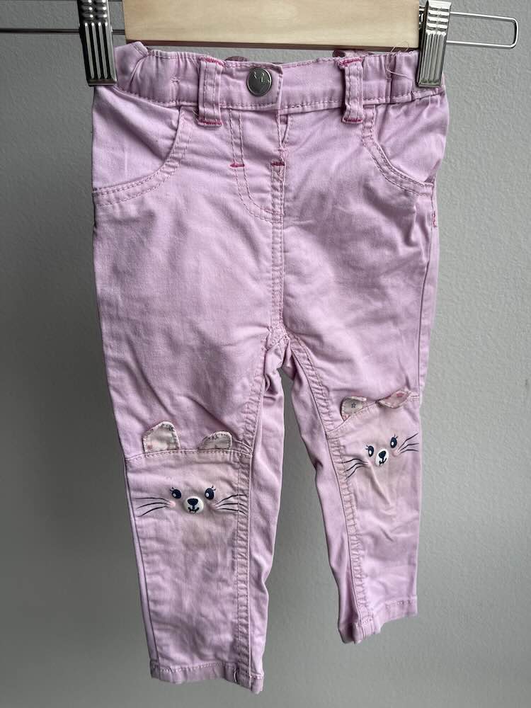 Preslatke pantalone roze boje sa printom malih zeka na koljenima