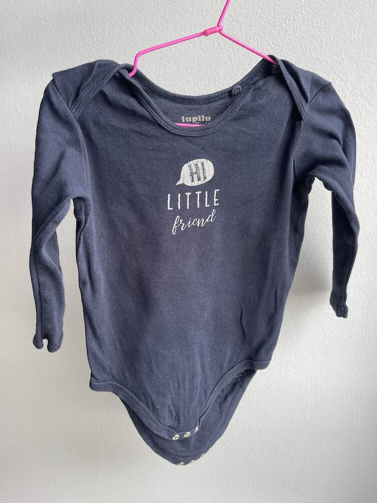 Body teget plave boje sa printom teksta Little friend, odgovara velicini 86\92