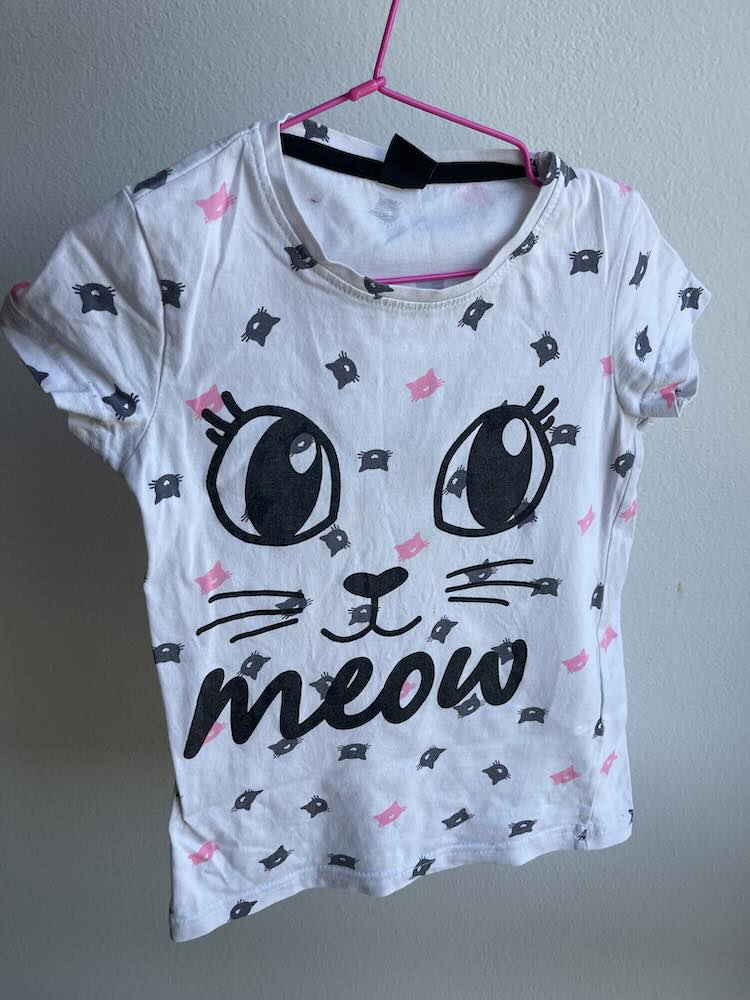 Preslatka majica za djevojcice, crno bijela, sa printom mace