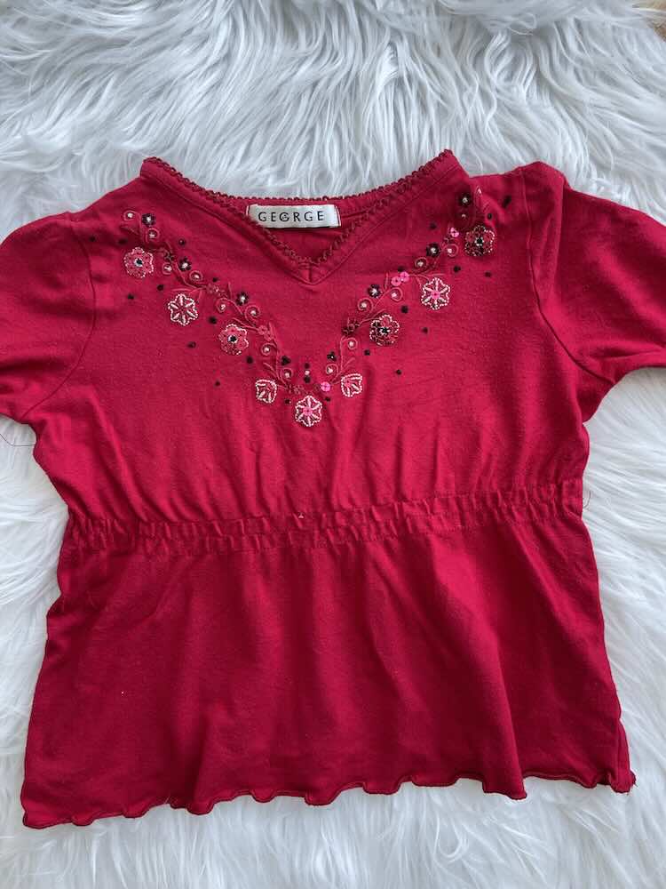Predivna majica crvene boje sa printom sjajnih cvjetica