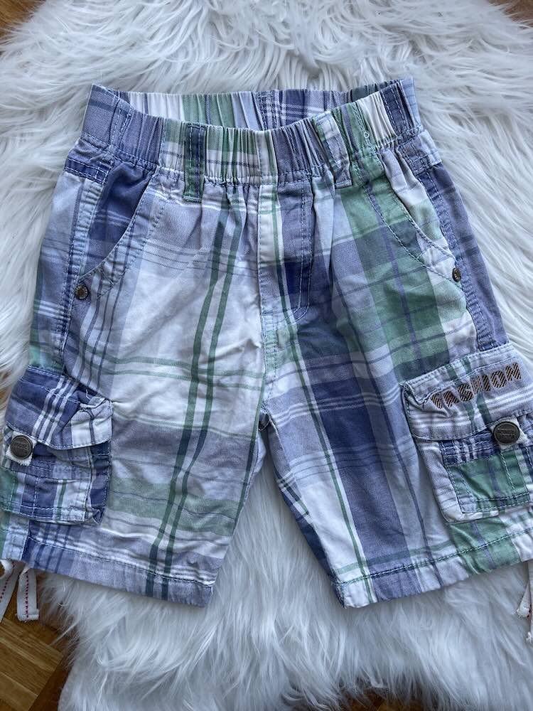 Prelijep sorc za djecake, karirani, plavo zelenih boja, sa dzepovima