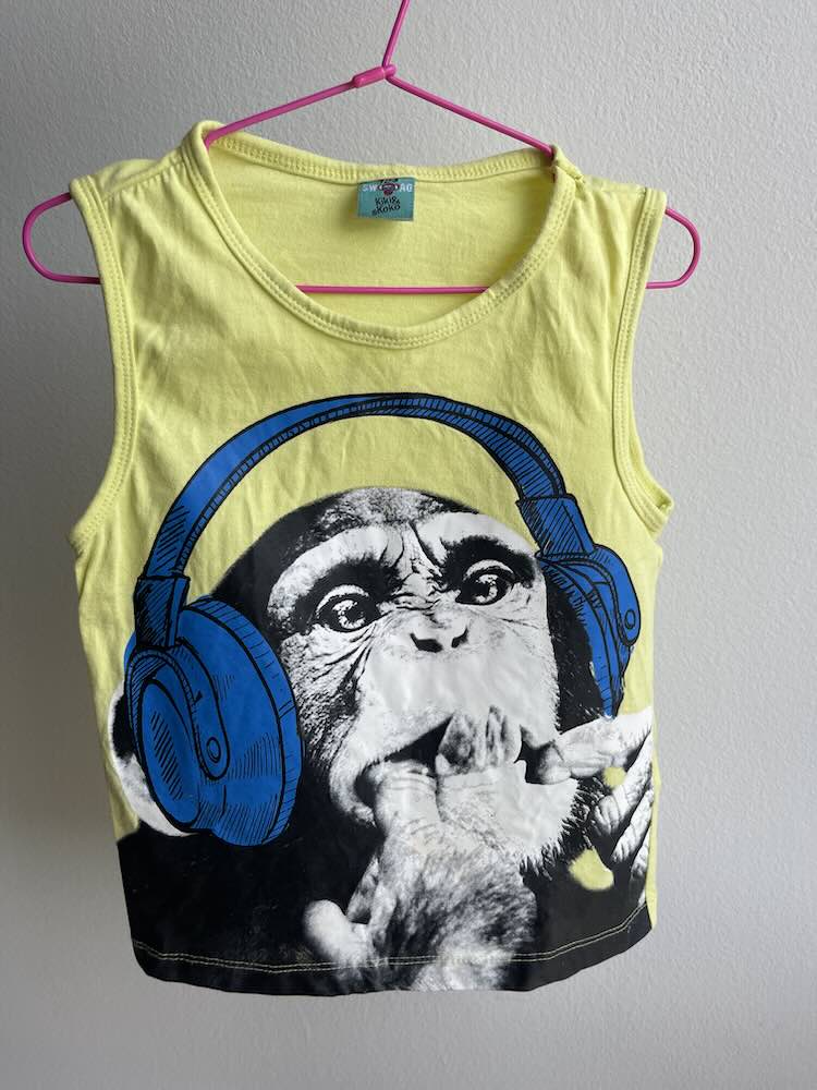 Zanimljiva majica gorile koja slusa muziku na slusalicama