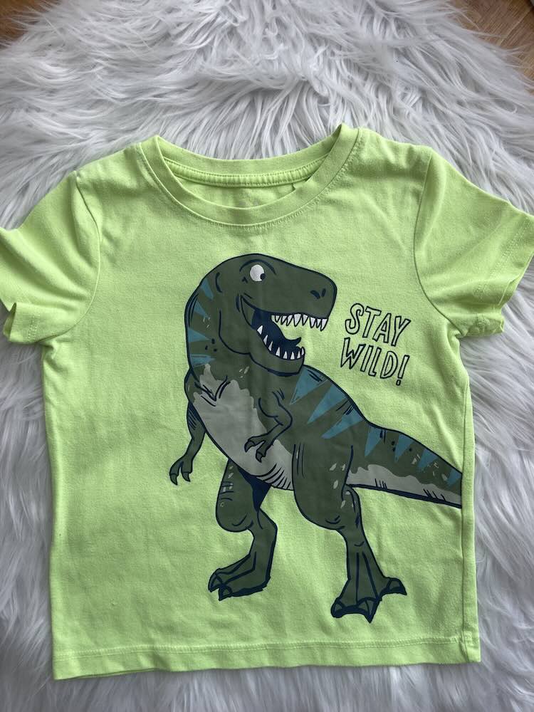 Divna majica zelene boje sa printom dinosaura i teksta Stay Wild